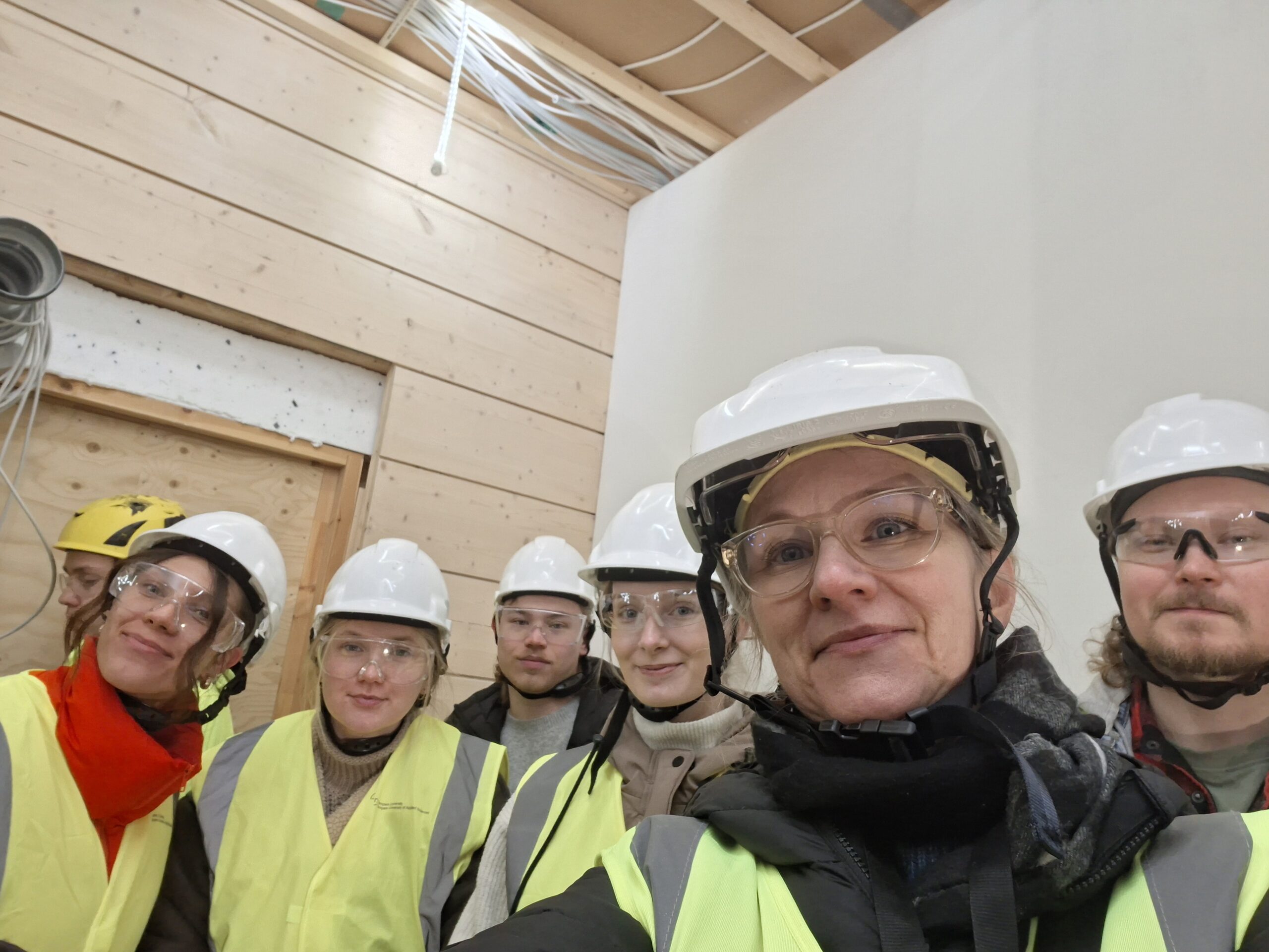”YAMK-tutkinnot tehdään perinteisesti monimuoto-opintoina töiden ohessa”, Minna Nyström kertoo. Kuvassa Nyström on Lempäälän asuntomessutyömaalla rakennusarkkitehtiopiskelijoiden kanssa. Kuva: Minna Nyström